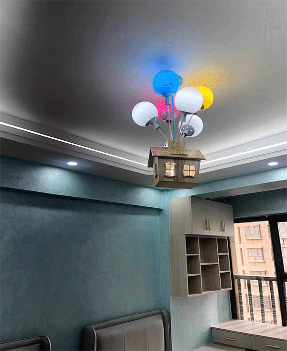 Introducing the Kids Multicolor Balloon House Chandeliers, a whimsical and enchanting addition to any child's room or play area. With its vibrant design and unique concept, this chandelier captures the essence of joy and playfulness. The collection of 6-8 charming balloon-shaped lights suspended from a central fixture creates a captivating visual display, casting a warm and gentle glow throughout the space. Crafted with high-quality materials, this chandelier is built to last and easy to install. Bring the magic of colorful balloons into your child's life with the Kids Multicolor Balloon House Chandeliers and watch their imagination soar in their own little wonderland.