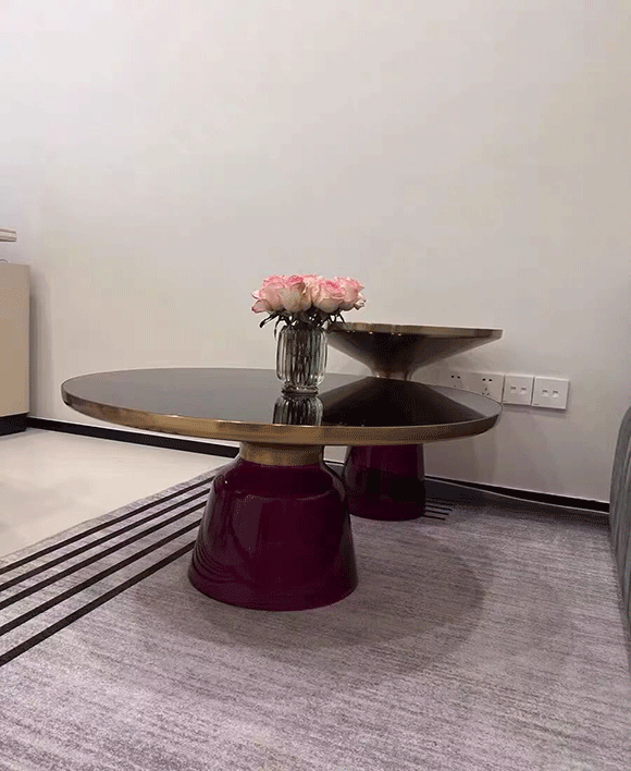 Bell Style Metal & Glass Round Coffee Table Side Table