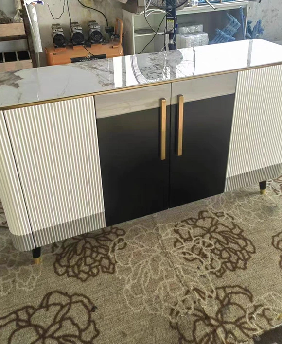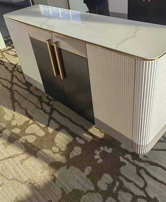 Elevate your dining area with this black and white sintered stone buffet sideboard, featuring a customizable buffet with stone top for modern elegance. Constructed with carbon steel legs, E1 grade eco-friendly plywood cabinets, and spacious buffet with shelves, this piece is designed for both style and functionality. Perfect as a sideboard with metal legs or a dining room buffet cabinet, it offers versatile storage options to organize your essentials. Available in two sizes (120x40x85cm and 150x40x85cm), it blends seamlessly into contemporary interiors. This sideboard with storage is the ideal addition to any modern dining space.