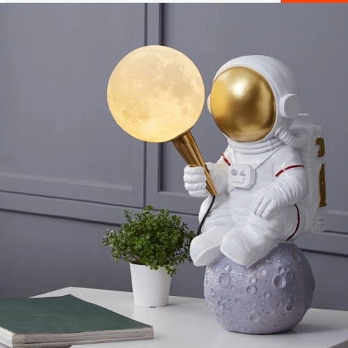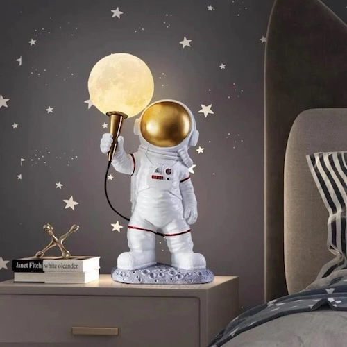 Add a touch of whimsy to your home with our adorable Astronaut lamp! Available in two charming models—sitting (20x20x37 cm) and standing (20x20x41 cm)—this resin-crafted lamp is perfect for desks, bedside tables, or as a playful accent piece in any room. Its cute and captivating design is ideal for children’s rooms, home offices, or anyone looking to add a bit of fun to their decor. With its delightful appearance, this lamp not only lights up your space but also serves as a conversation starter.