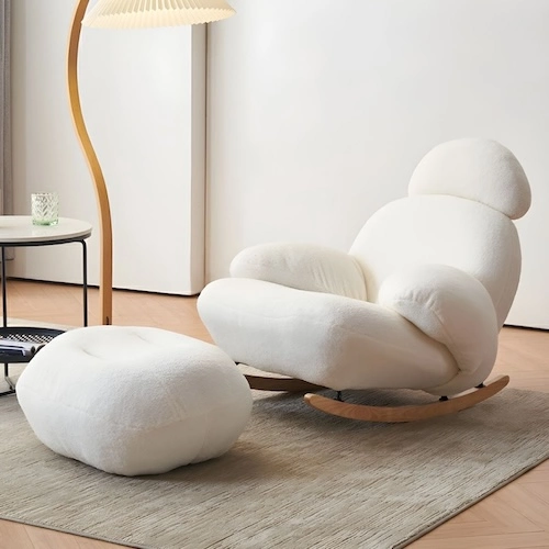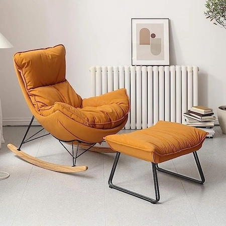 For those who love retro aesthetics with a modern twist, the Postmodern Vintage Style Lazy Comfortable Rocking Chair with Ottoman is a standout choice. Featuring a durable steel frame, oak feet, and premium upholstery in materials like leathaire and cotton flannel, this rocking chair is as durable as it is stylish.