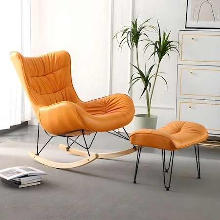 Our Modern Nursery Rocking Chair with Ottoman is designed to bring comfort and style to any home. Perfect for nursing mothers or anyone looking for a comfortable seating solution, this chair features premium leathaire material, a sturdy steel frame, and oak feet for a modern finish. Available in two elegant colors—orange and green—this rocking chair is as aesthetically pleasing as it is functional.