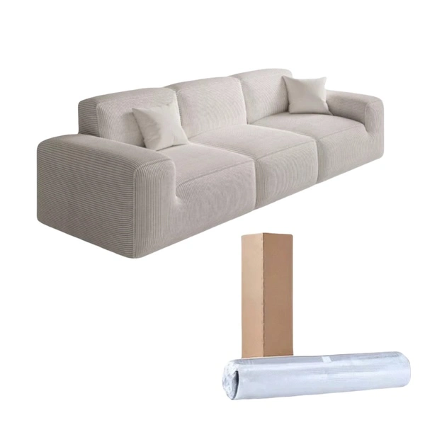 A compressed sofa is delivered in vacuum-packed, compact packaging. The core idea is simple: tighter packaging is easier to transport and, in product descriptions, is commonly associated with smoother delivery into tight spaces and potentially lower delivery costs compared with bulky traditional shipping.
