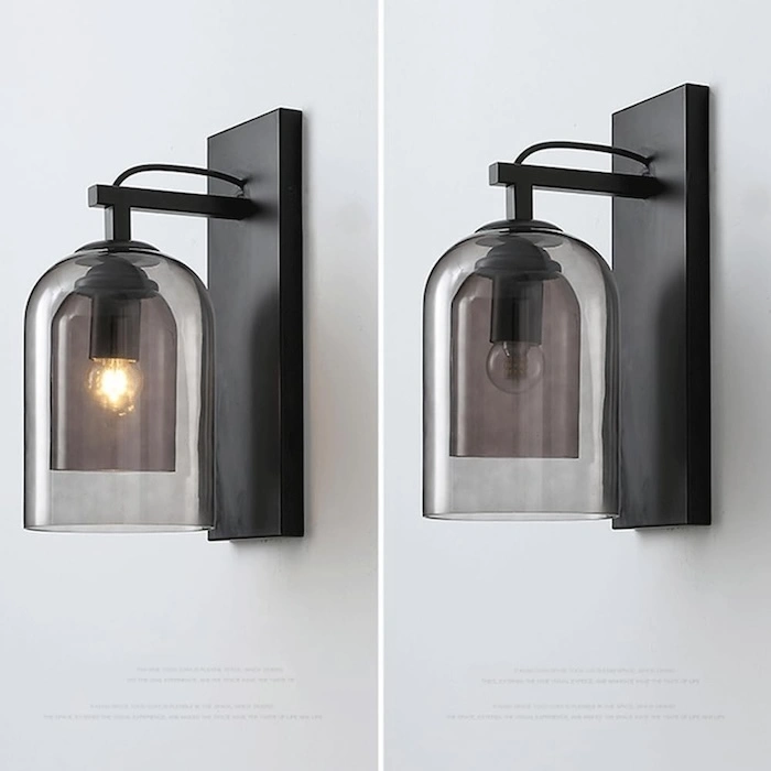 2. European Vintage Style Smoke Grey Double Glass Wall Light