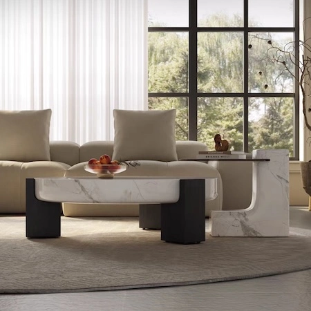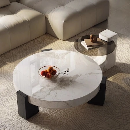 But don’t let the shape fool you into thinking it’s all about aesthetics. Today’s round coffee tables are as functional as they are beautiful—multi-surface, multi-material, and full of personality. From bold marble tops to sintered stone showpieces, these tables do more than just hold your latte.