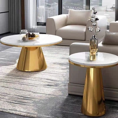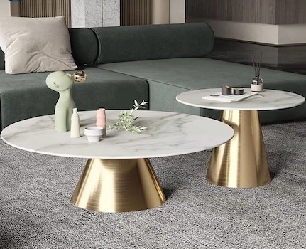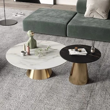 ✨ 2. Gold Base + Sintered Stone Round Coffee Table (Set of 2)