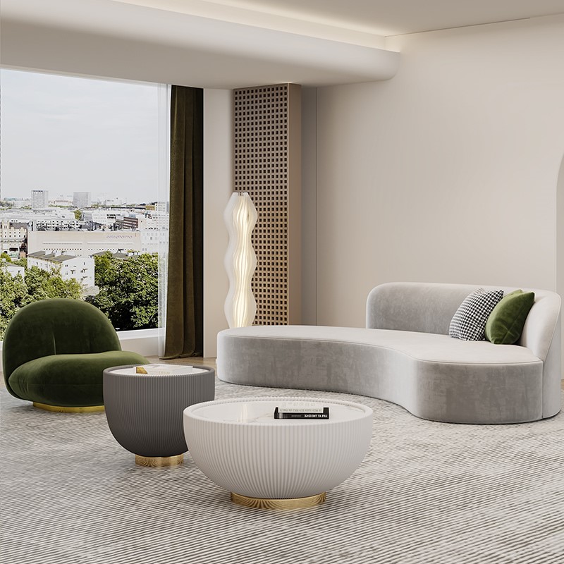Available in materials such as microfiber leather, velvet, lamb wool fabric, and anti-cat scratching fabric, this sofa can be tailored to suit your specific style. Its unique design and customizable options make it a versatile choice for those looking to create a chic, postmodern aesthetic.