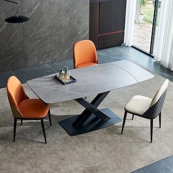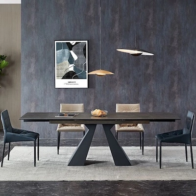 Crafted with a luxurious sintered stone top and sleek metal base, the ND6027 offers effortless extendability. It starts comfortably seating six and can expand to accommodate up to 14 people — perfect for dinner parties, celebrations, or large family gatherings. Highlight: High-end materials meet seamless engineering for a flawless, sophisticated look whether extended or compact.