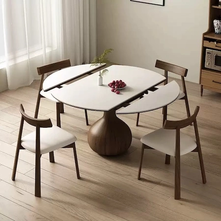 → Minimalist Wood Vase Base Extendable Round Dining Table