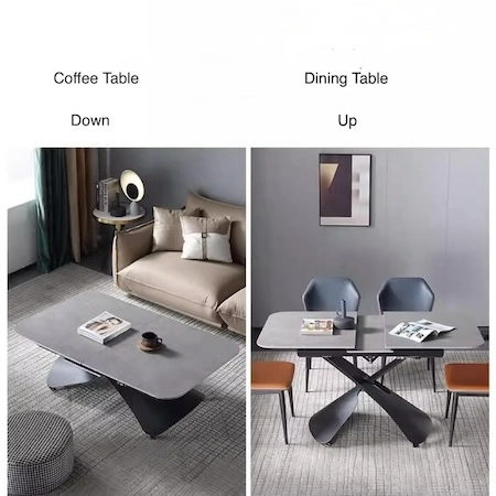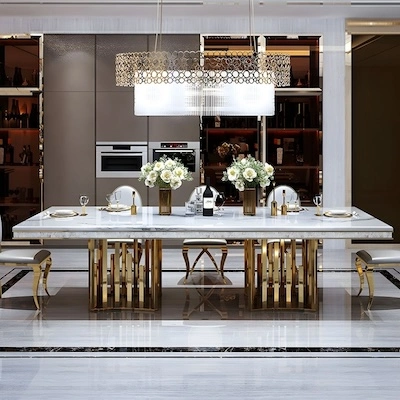 - Metal and Sintered Stone Base Dining Table (Sleek, structured form, modern industrial appeal)