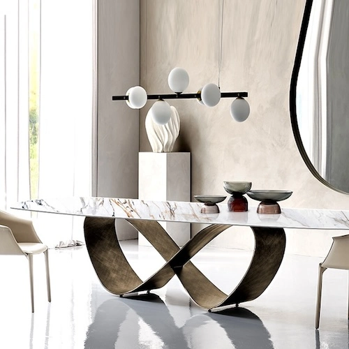 - Infinity Base Dining Table (Artistic infinity-shaped metal base for strong visual impact)