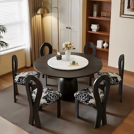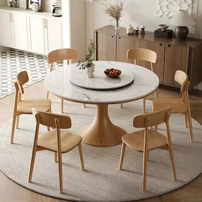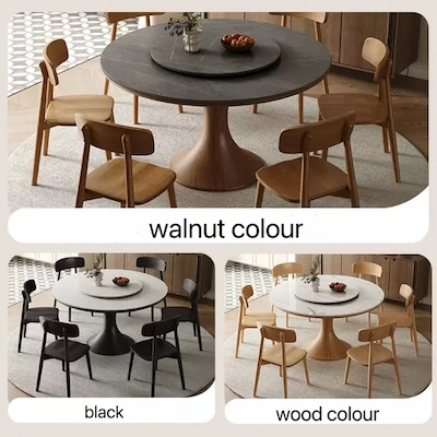 → Minimalist Dun Dun Wood Base Round Dining Table with Lazy Susan