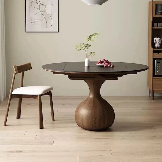 → Minimalist Wood Vase Base Extendable Round Dining Table