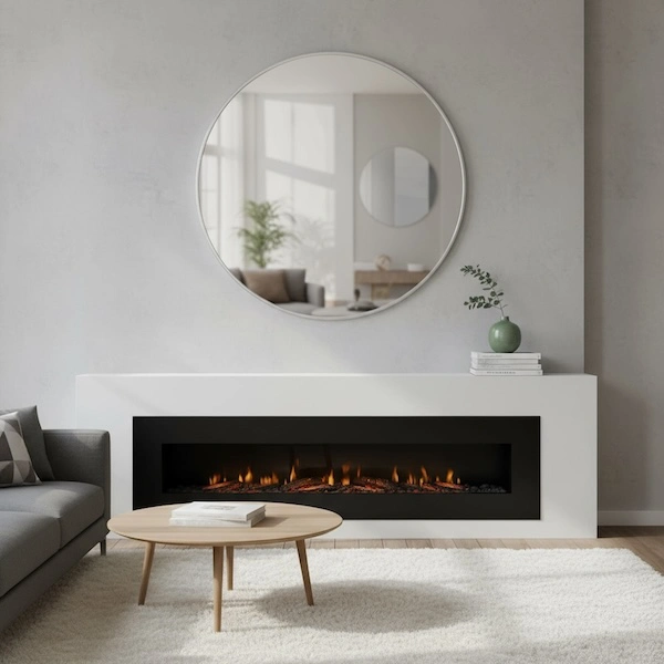 In a living room, a round mirror can act as a subtle statement, especially if you keep the surrounding styling minimal. With its sleek metal edge and clean profile, this mirror suits spaces where you want a refined look rather than decorative detail.