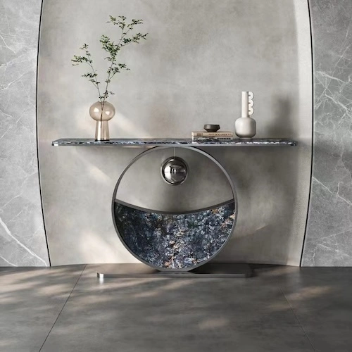1. New Chinese Style Half Circle Stone Base Metal and Stone Console Table