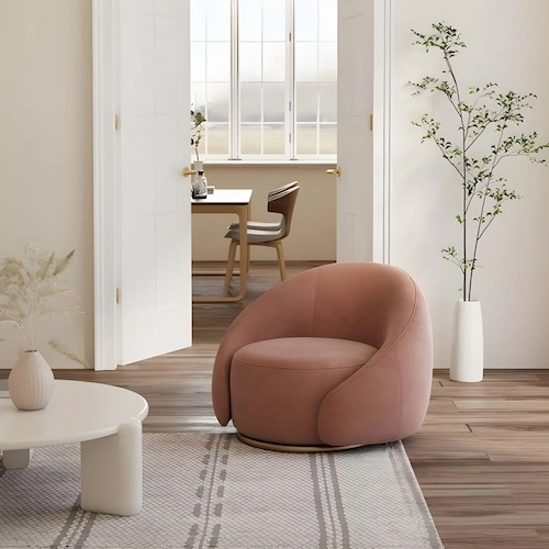 Comfort meets contemporary elegance! This swivel barrel chair is a customer favorite for its sleek curves, plush upholstery, and smooth 360-degree rotation. Available in a variety of materials and colors, this chair is the perfect accent for any modern living space. Grab it now at 20% off and add a touch of luxury to your home!