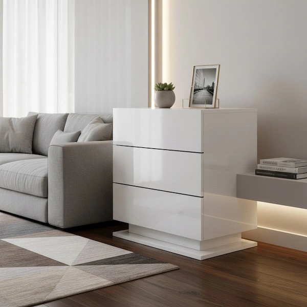 Pick the one that matches your habits (open shelf if you like quick access, drawers if you love a clear surface, LED if you want instant cosy mood), add a lamp and a small tray, and you’ll be surprised how “done” the whole room feels.