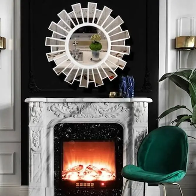 A large sunburst wall mirror above a couch or fireplace creates a stunning centrepiece. It draws the eye upward, adding balance and drama to your living room.