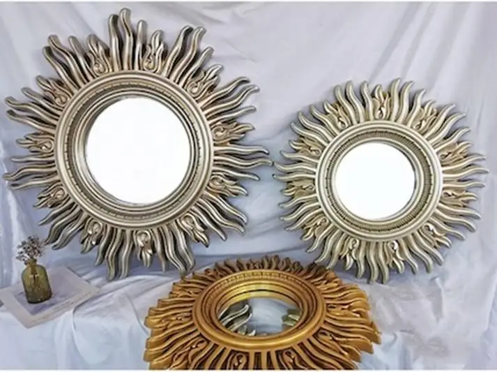 - Sunflower Style Gold Silver Black White Framed Round Silver Wall Mirror — an eye-catching piece that suits multiple colour palettes.