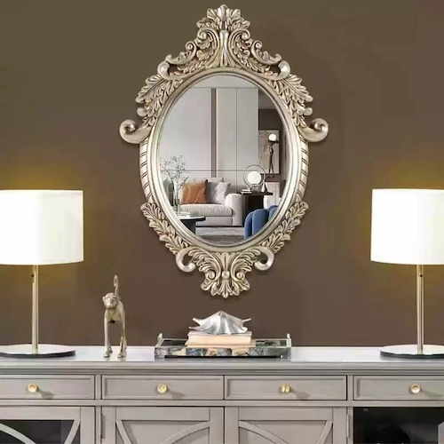 Hang a Barocco mirror above a fireplace or sofa. Pair it with vintage furniture or plush textiles to achieve a warm European luxury feel.