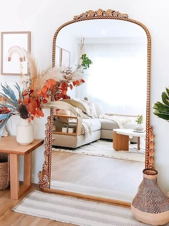 - Decorate the surroundings: Place flowers, candles, or artwork near your mirror to create layers and extra charm.