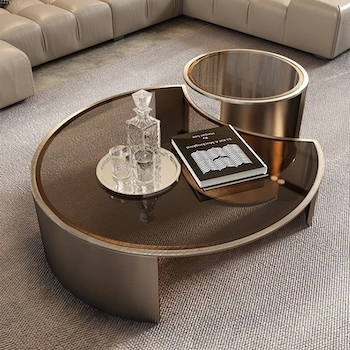 3. Modern Luxury Italian-Style Rose Gold Glass Coffee Table – Set of 2