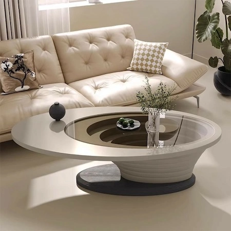 ✨ 2. Oval Glass Coffee Table with Wood Pedestal Base