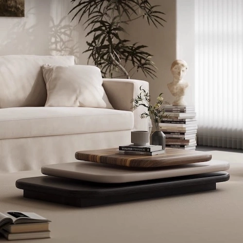 If you appreciate innovative design and multi-functionality, this one’s for you. With three individually rotatable layers, this coffee table can shift and expand depending on your needs. Keep it closed for a clean, sculptural profile, or rotate the panels to create dynamic surface areas for serving, styling, or play.