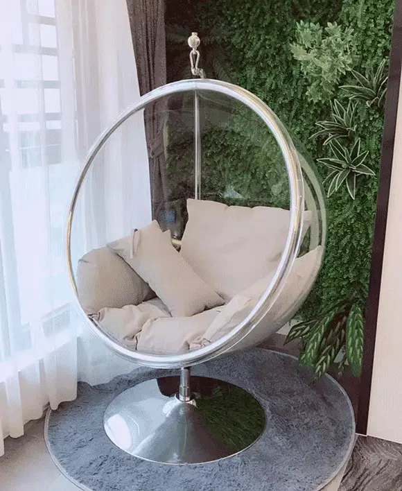 Step into iconic comfort with our Hanging Bubble Chair Model B, a stylish seating solution perfect for both indoor spaces and outdoor furniture patio set arrangements. Crafted with durable materials and a sleek clear bubble shell, this chair is a unique blend of modern design and functional elegance. It fits beautifully into outdoor patio furniture table zones or reading corners, while also doubling as an eye-catching outdoor furniture with table pairing. Designed for comfort and durability, it’s ideal for those seeking chairs outdoor dining functionality or a relaxing out door lounge chair. The chair also serves as an exceptional piece within your outdoor & patio furniture setup, offering a cozy and sculptural seating outdoor experience. Whether you need versatile outdoor seats or modern seats outdoor, this bubble chair brings style and substance together in one beautiful form.
