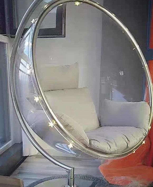 Add iconic flair to your indoor reading nook or patio furniture for outdoors with this Hanging Bubble Chair Model C. Crafted from durable acrylic and metal, it brings a unique sculptural element to any environment. Whether you’re styling a sunny loft or upgrading your outdoor furniture patio set, this chair offers unmatched comfort and visual appeal. The design blends seamlessly into both minimalist interiors and modern furniture patio furniture spaces. With plush cushions and a sturdy frame, it’s the perfect choice for stylish relaxation in any outdoor furniture with table arrangement or interior retreat. This piece also works beautifully as part of your outdoor seats plan or seating outdoor collection, making it a versatile and eye-catching addition.