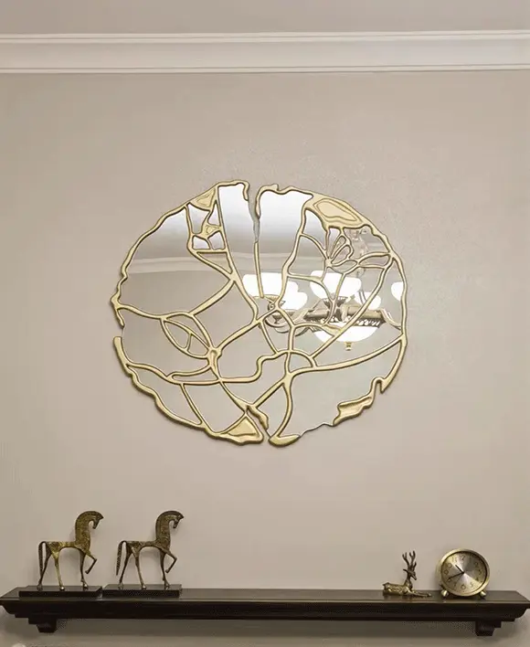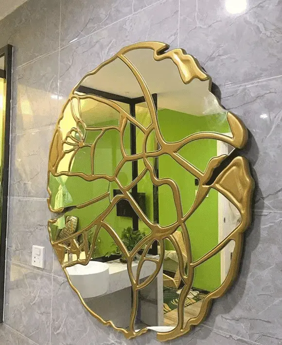 This exquisite mirror, offered in both medium and large sizes, is constructed from top-notch plywood and finished in a striking gold hue, making it a fitting addition to various interior designs. Its distinctive style provides an economical yet high-quality choice for those in search of enhancing their home decor. Take your space to the next level with this beautifully crafted item.