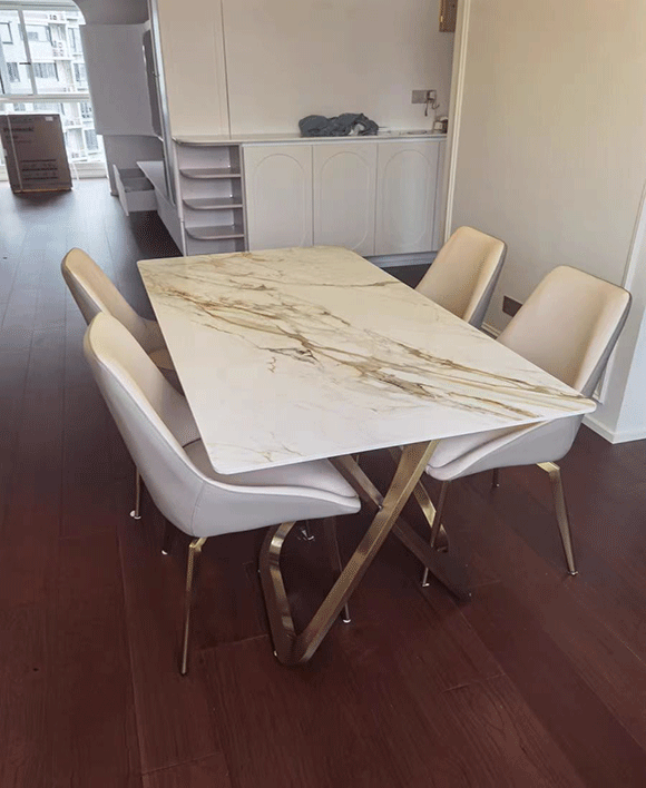 Cross Sled Metal Base with Sintered Stone Top Dining Table More Colours & Sizes Customisable