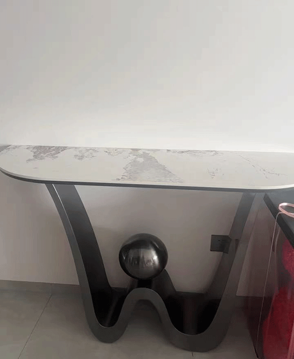 This console table is a great choice of luxe update for your lounge or home entrance. The golden base takes its inspiration from modern design, and the sintered stone and marble top is a stain-resistant finishing touch. Your choice of accessories on top of the console table can add personality that defines your home.