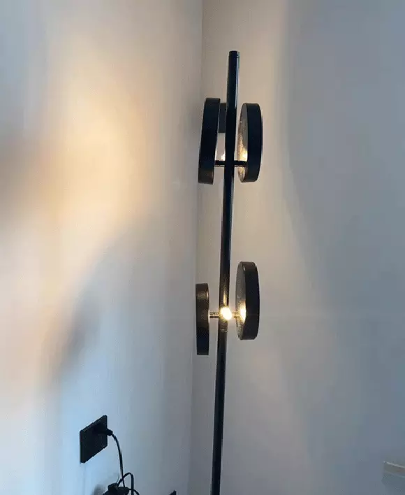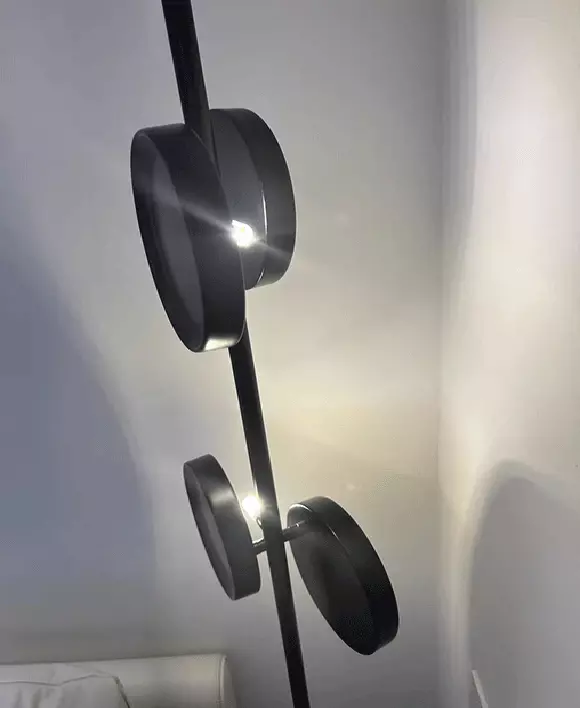 The Floating Discs LED Floor Lamp is a sculptural masterpiece that merges industrial minimalism with bold contemporary design. Crafted from premium iron in a sleek black finish, this designer LED floor lamp features four built-in LED discs that emit adjustable warm, natural, and cool light.