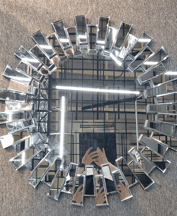 Geometric decorative round faceted silver wall mirror