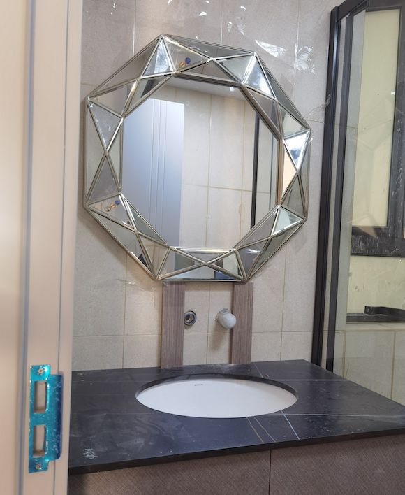 Introducing our Geometric style octagonal silver wall mirror is a stylish and affordable addition to your home. This mirror is made with high-quality PU framing, reflecting our brand's commitment to creating well-designed pieces. Its unique octagonal shape adds a modern touch to any room, while its versatile color options (gold, silver, and black) allow it to blend seamlessly with your existing décor.