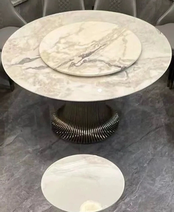 Glam Metal Abstract Curved Base and Sintered Stone Top Round Dining Table with Lazy Susan More Colours and Sizes Customisable