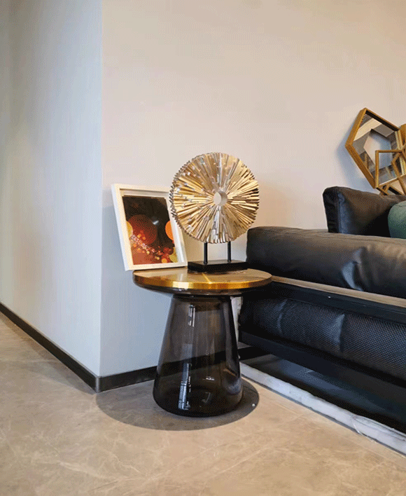 Glass and Metal Drum Style Round Coffee Table Side Table