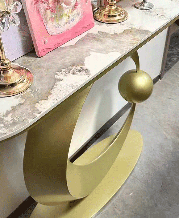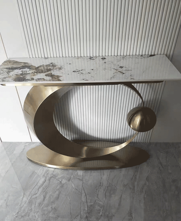 Half Moon Stainless Steel and Stone Console Table with Electroplating Finish