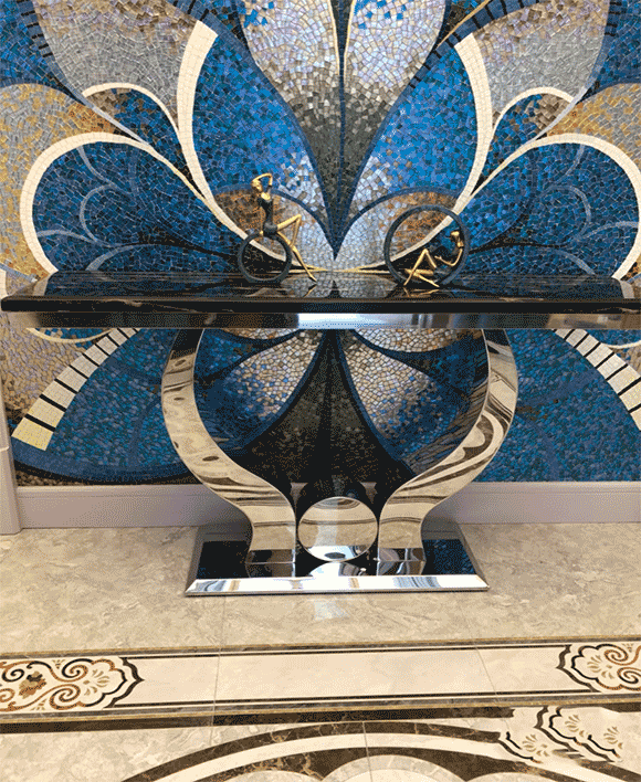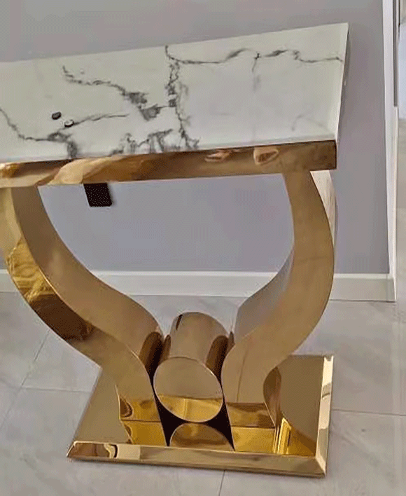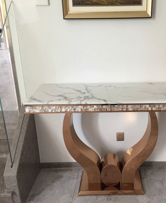 In Love Metel and Stone Console Table with Shell Décor and Electroplating Finish