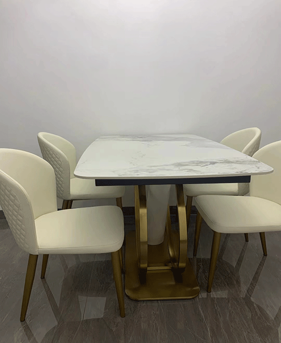 Inclined Metal Column Base Sintered Stone Top Dining Table More Colours and Sizes Customisable