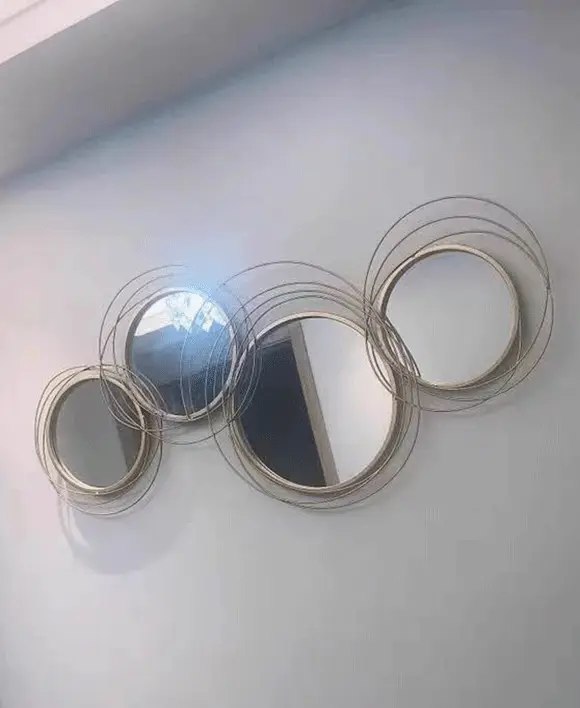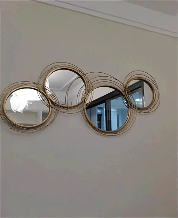 Bring sophistication to your space with our Light Gold Overlapping Rings Wall Mirror. The unique 3D design of overlapping rings creates a striking focal point in any room. Crafted with high-quality materials, this mirror is not only a beautiful piece of decor but also an affordable addition to your home. Add depth, style, and a sense of spaciousness with this elegant wall mirror.