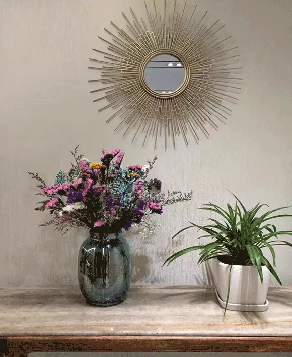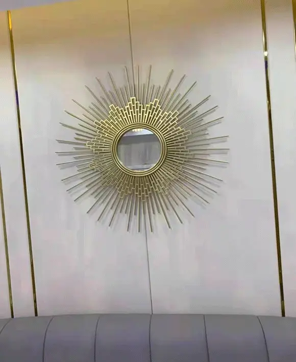 Immerse yourself in the modern, artistic vibes of our Light Gold Sunburst Metal Wall Mirror. Crafted from high-quality metal and mirrors, this piece is designed to catch the eye and uplift any room. Offered in three different sizes (small, medium, and large), you can choose the perfect fit for your space. The light gold hue of the metal frame blends beautifully with a range of color schemes, making it a versatile piece for any home. With its sunburst design, it serves not only as a functional mirror but also as an impressive wall art piece. It's simple to mount with the included nails and designed to hang vertically. For maintenance, just wipe it with a dry cloth. Add this affordable yet high-quality piece to your decor today.