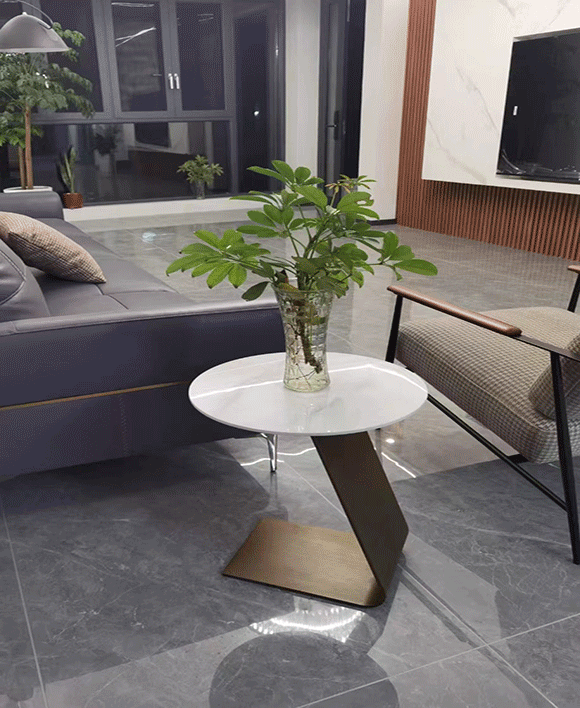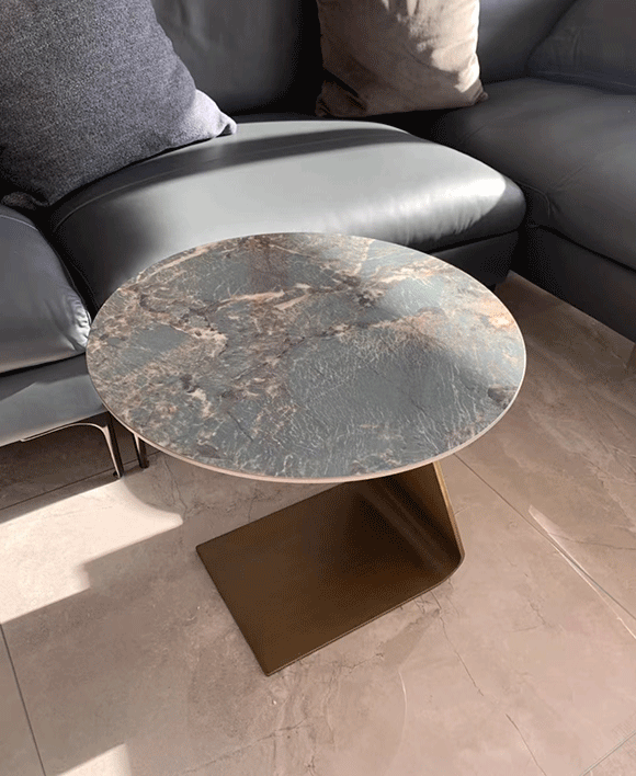 Modern Luxury Glam Italian Style Gold Round Metal & Sintered Stone Top Side Table