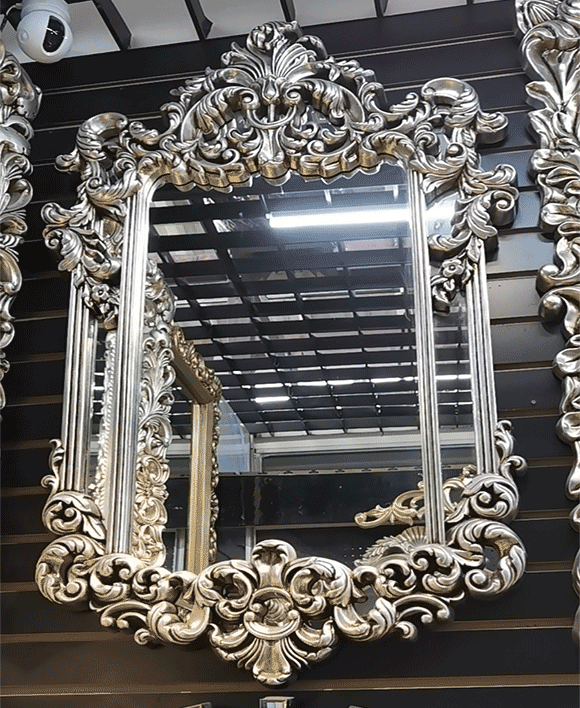Barocco Style Double Framed Rectangle Silver Wall Mirror