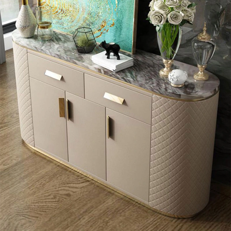 Luxury Leather and Sintered Stone Top Sideboard Buffet More Colours are Customisable