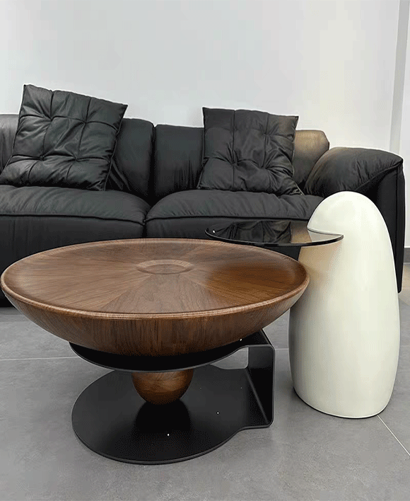 Luxury Walnut Veneer and Paint Varnished Round Coffee Table