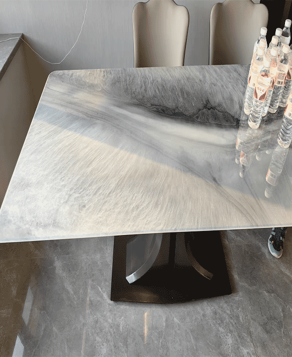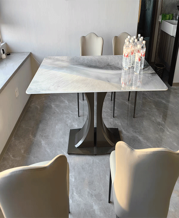 Metal Curved Base Sintered Stone Top Dining Table Colours and Sizes Customisable