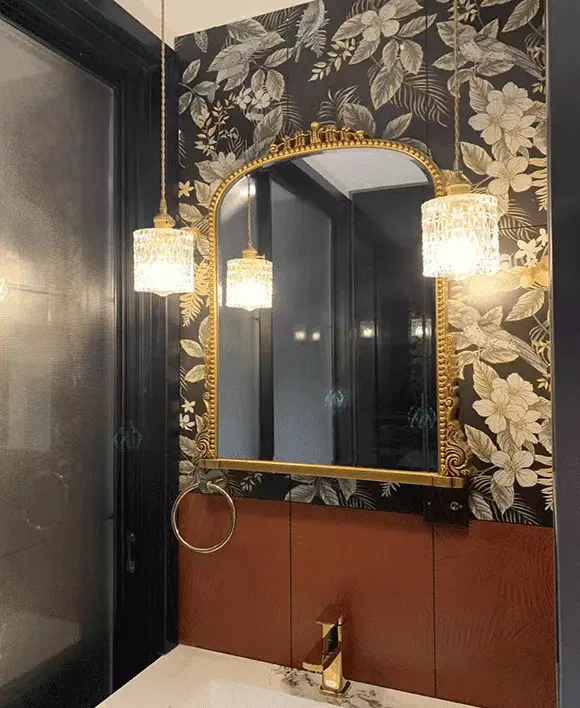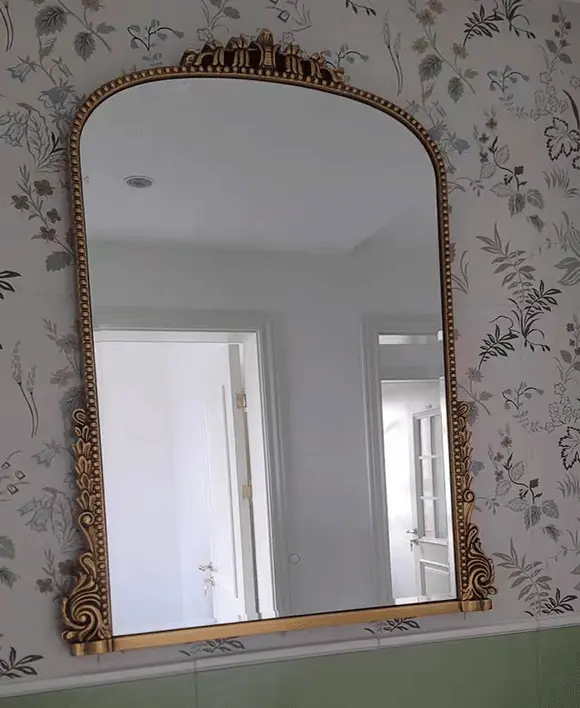 Enhance your living space with our Mini Barocco Style Arched Wall Mirror. This stylish piece features a sophisticated gold, silver, white frame made of durable PU, adding a touch of Mid-Century and Art Décor elegance to your walls.
