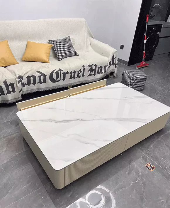 Elevate your living space with this Minimalist Beige Sintered Stone Rectangle Coffee Table. Crafted from E1 grade environmentally friendly painted lacquer board and featuring a sintered stone top, this designer piece is perfect for any modern interior. The rectangle coffee table measures 130x70x42cm and offers customizable size and sintered stone options to fit your home decor. Whether you’re enjoying your morning coffee or entertaining guests, this table effortlessly blends style and function, making it the ideal table for coffee lovers. Pair it with your lounge setup as a small table or a designer coffee table for a chic, sophisticated look.